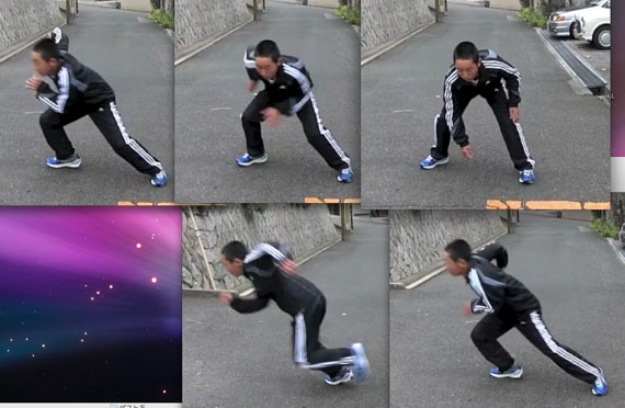 因に良い盗塁のスタートの条件としては「体の方向転換が素早い」「体が起き上がらない」などが考えられますが、どちらのポイントもまだ改善の余地が多く有ります。坂道ダッシュでの体の柔らかい動きにはかなり良いものが有る(それが解りやすいので逆再生スローを挟みました)ので、やれば上手くなると思います。